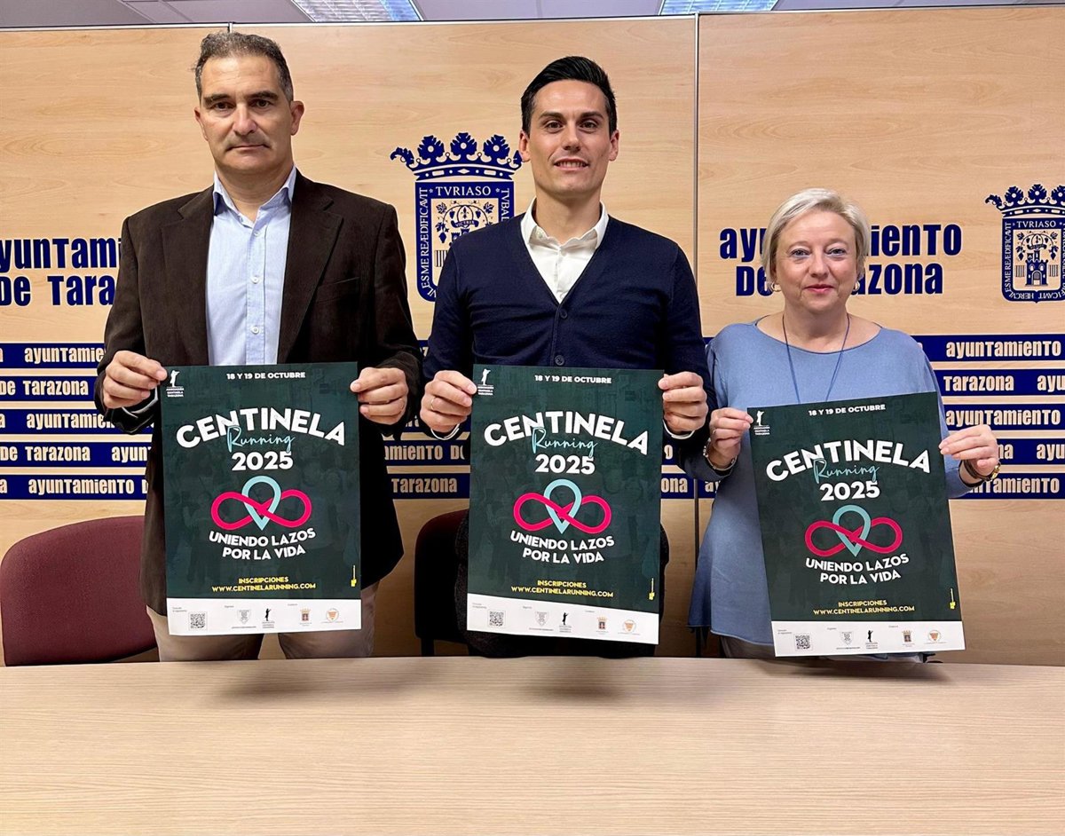El acto de presentación ha tenido lugar este jueves en la Sala de Prensa del Ayuntamiento de Tarazona, con la participación del concejal de Deportes, Pablo Escribano; la presidenta de la Asociación Centinela, Pilar Taus; y el presidente del Club de Atletismo Tarazona, José Manuel Calavia.