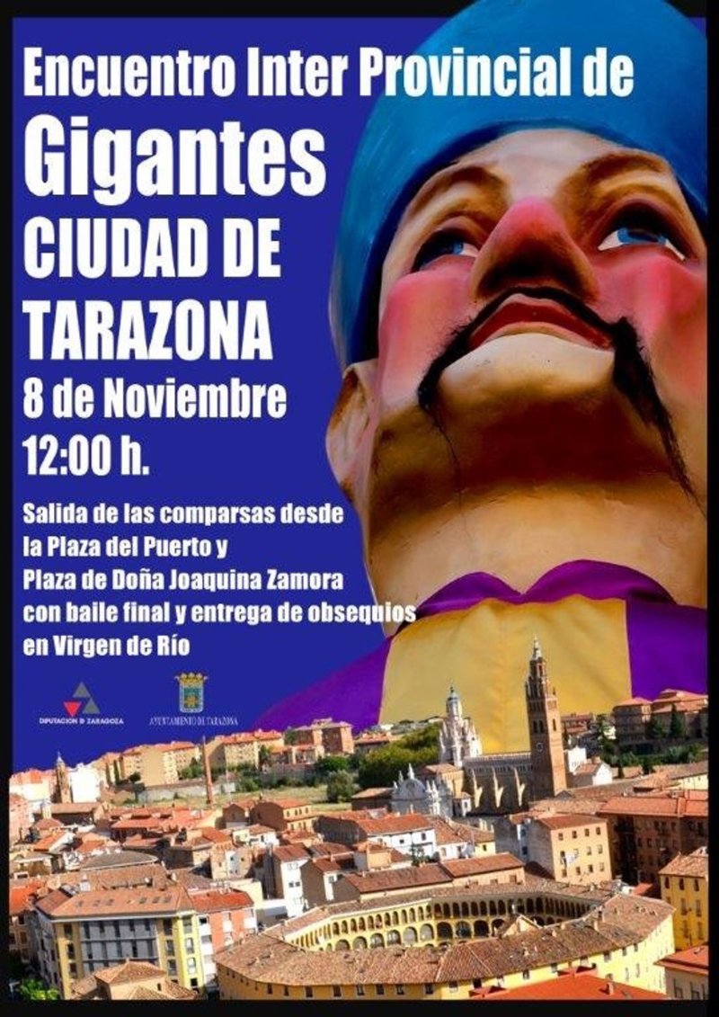 Tarazona celebrará este sábado, 8 de noviembre, un encuentro interprovincial de comparsas de gigantes con grupos de Gallur (Aragón), Buñuel y San Adrián (Navarra) Calahorra (La Rioja), así como de la propia ciudad, que congregará a un centenar de personas, entre portadores, músicos y acompañantes.