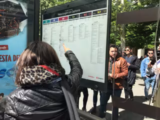 Usuaria ante el gráfico de las paradas y marquesinas de autobuses urbanos - EUROPA PRESS - Archivo