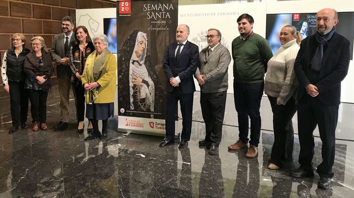 Estos datos los ha recordado la vicealcaldesa y consejera municipal de Cultura y Proyección Exterior del Ayuntamiento de Zaragoza, Sara Fernández, quien ha presentado el cartel de la Semana Santa, junto al presidente de la Junta Coordinadora de Cofradías, Ignacio García, y la hermana mayor de la cofradía organizadora, Carmen Etayo.