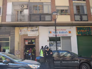 Dos policías, con el rostro oculto por pasamontañas, han sacado a Medioni del portal de su vivienda, situada en la calle Florentino Ballesteros, en el popular barrio de Las Fuentes.