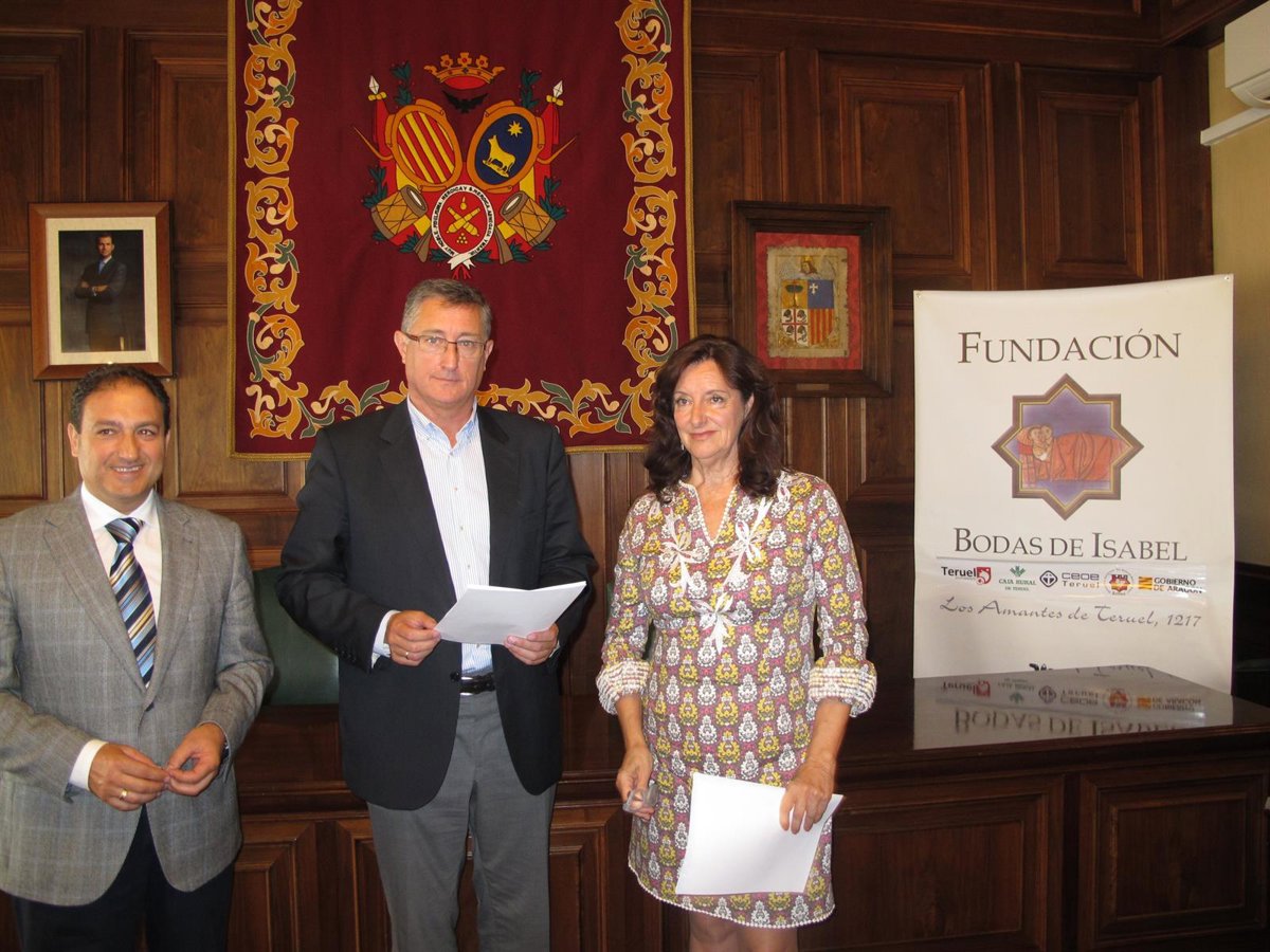 La gerente y directora de la Fundación Bodas de Isabel, Raquel Esteban, el alcalde de Teruel y presidente de la Fundación Bodas de Isabel, Manuel Blasco, y el concejal de Promoción Turística del consistorio, José Manuel Valmaña, han presentado en rueda de prensa este evento, que coincidirá con la celebración de La Partida de Diego en la ciudad.