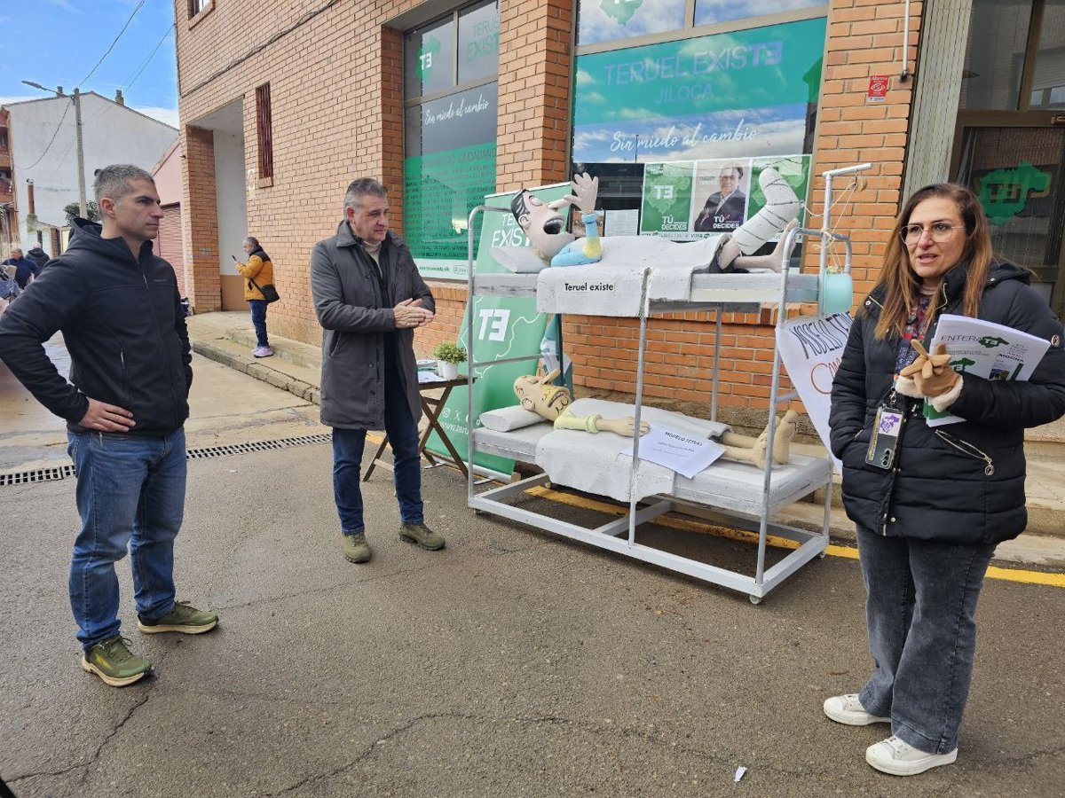 Los candidatos han "adornado" su mesa informativa con las literas utilizadas por esta formación durante las manifestaciones para exigir la construcción de 54 habitaciones individuales en el nuevo Hospital de Teruel, una medida introducida vía enmiendas por el grupo parlamentario de Teruel Existe en los presupuestos autonómicos de 2024, al igual que otra para radioterapia.