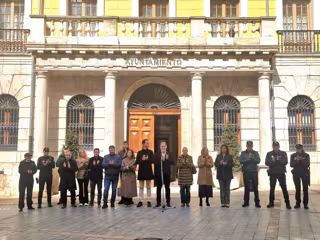Representantes políticos, sociales y de los cuerpos y fuerzas de seguridad han guardado un minuto de silencio en la puerta del Ayuntamiento de Teruel hoy 11 de marzo cuando se cumplen 22 años de los atentados del 11 M en Madrid - AYUNTAMIENTO DE TERUEL