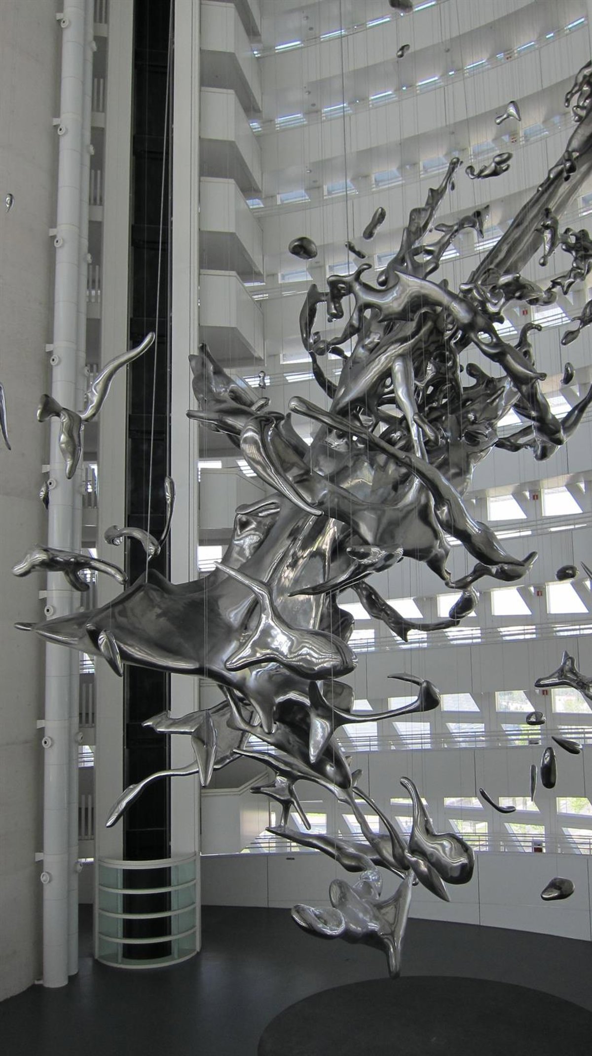 En total, consta de 134 piezas distintas, compuestas de aluminio, que se sujetan mediante cables a la parte superior de la Torre, y que representan una enorme gota de agua impactando sobre una superficie, ha recordado el Ejecutivo aragonés en una nota de prensa.