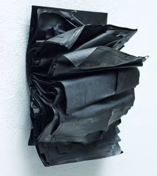 Siguiendo esta fuente de inspiración, realiza obras en técnica mixta, tinta sobre papel y esculturas que transmiten belleza basándose en la extrañeza y lo no convencional, donde se aprecia el registro procesual y temporal basado en el propio soporte y la acción que es aplicada en él.
