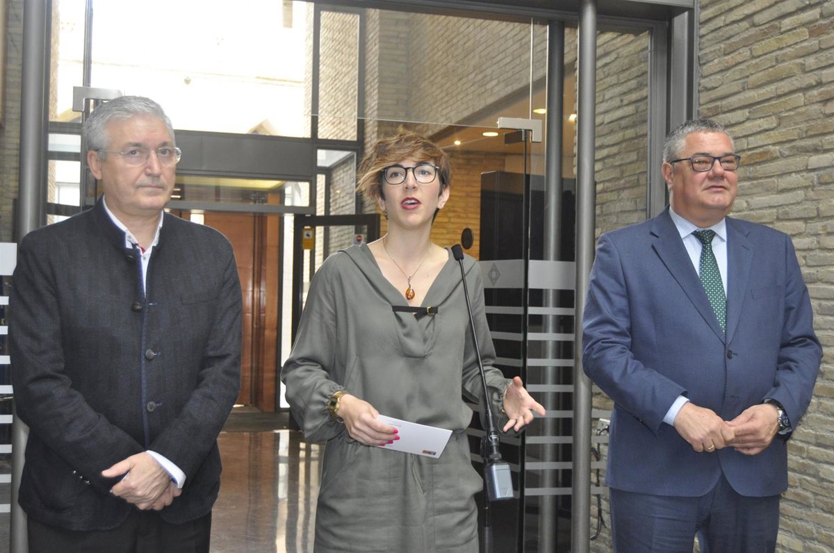 Un total de 300 ciudadanos podrán asistir al acto oficial de celebración del 23 de abril, Día de Aragón, en el Palacio de La Aljafería, sede de las Cortes de Aragón, dentro del programa de puertas abiertas 'Ven. Entra. Participa', que han presentado este lunes la presidenta de la institución, Violeta Barba, y los vicepresidentes primero y segundo de la cámara, Florencio García Madrigal y Antonio Torres, respectivamente.