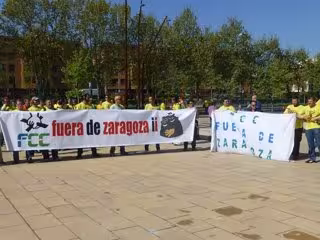 La plantilla que ha realizado un paro de tres horas, se ha concentrado en la puerta del Edificio Seminario. Desde las 11.00 horas se han podido ver diferentes pancartas desplegadas por los trabajadores con los lemas "Fuera FCC de Zaragoza" o "Jardineros en lucha".