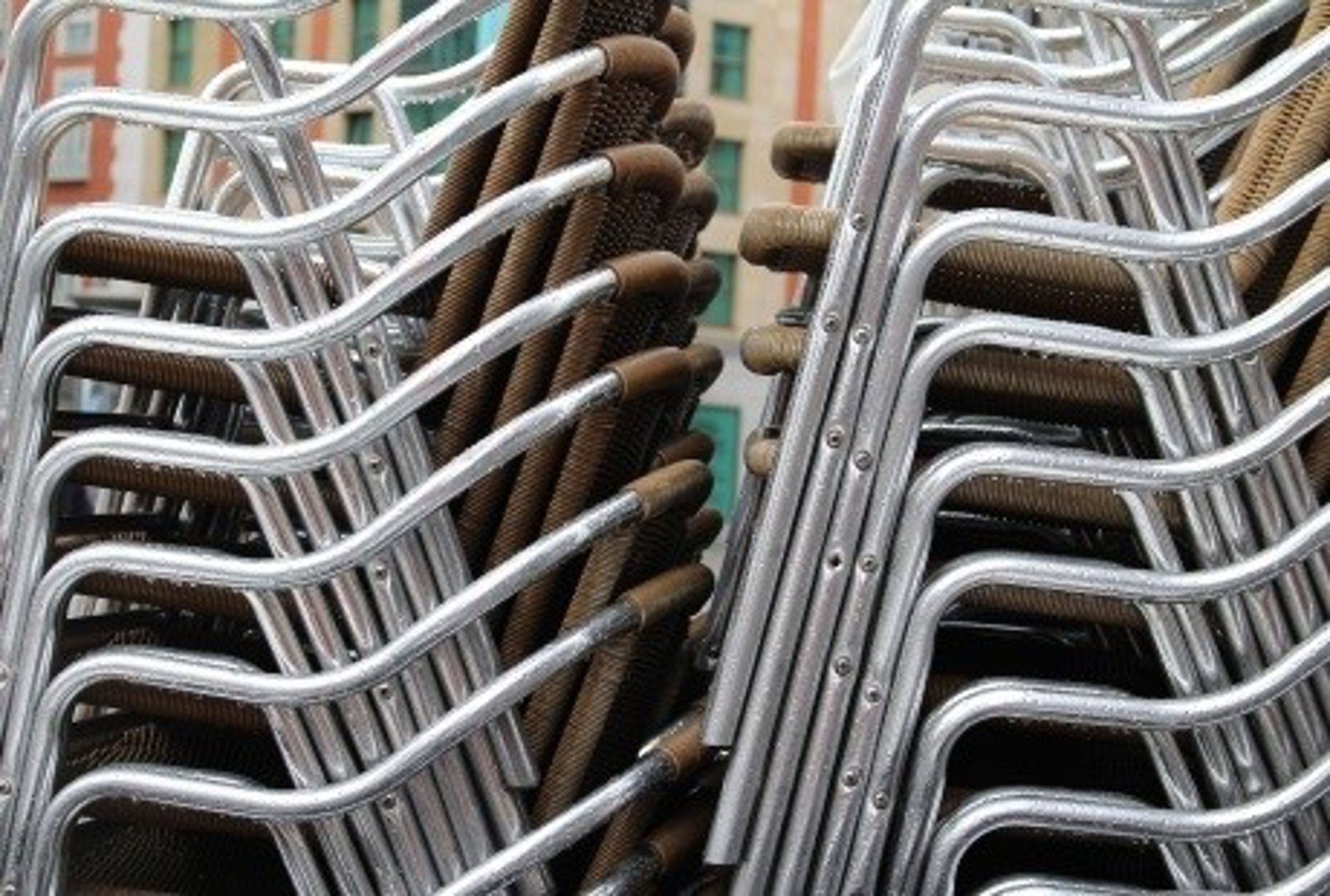 Archivo - Sillas amontonadas en una terraza. - DGA - Archivo