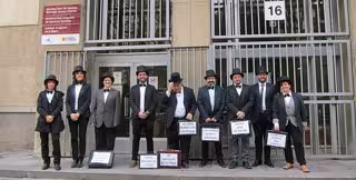 Para trasladar estas reivindicaciones al IASS familiares de personas con discapacidad y trabajadores del Observatorio han acudido a la sede de dicho instituto vestidos como 'cobradores del frac' para reclamar la deuda.
