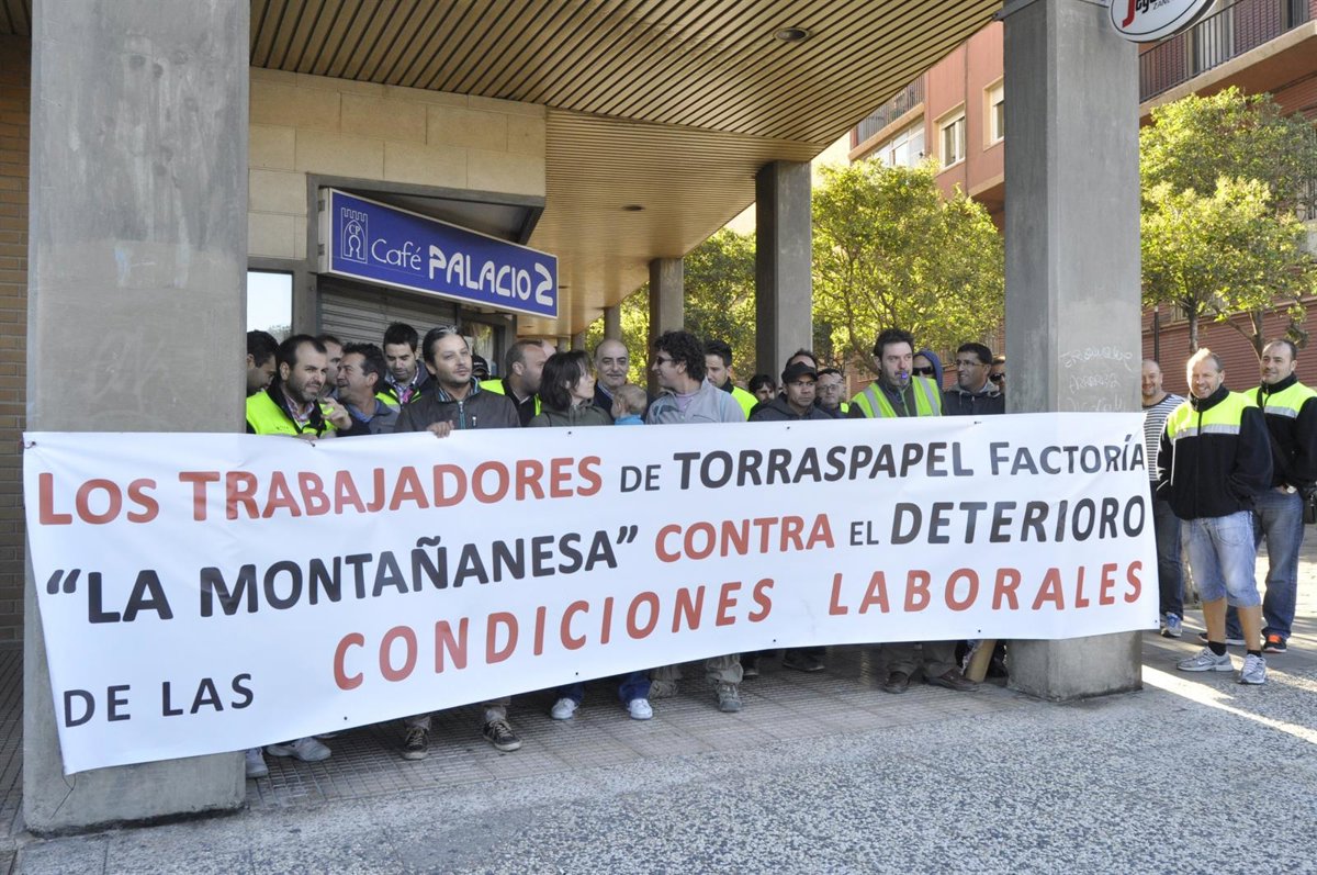Un centenar de trabajadores de la empresa Torraspapel se han concentrado este jueves a las puertas del Palacio de La Aljafería, sede de las Cortes de Aragón, con motivo de las movilizaciones que están realizando para protestar por "el deterioro" de sus condiciones laborales, ha explicado a Europa Press el presidente del Comité de Empresa, Mariano Marín.