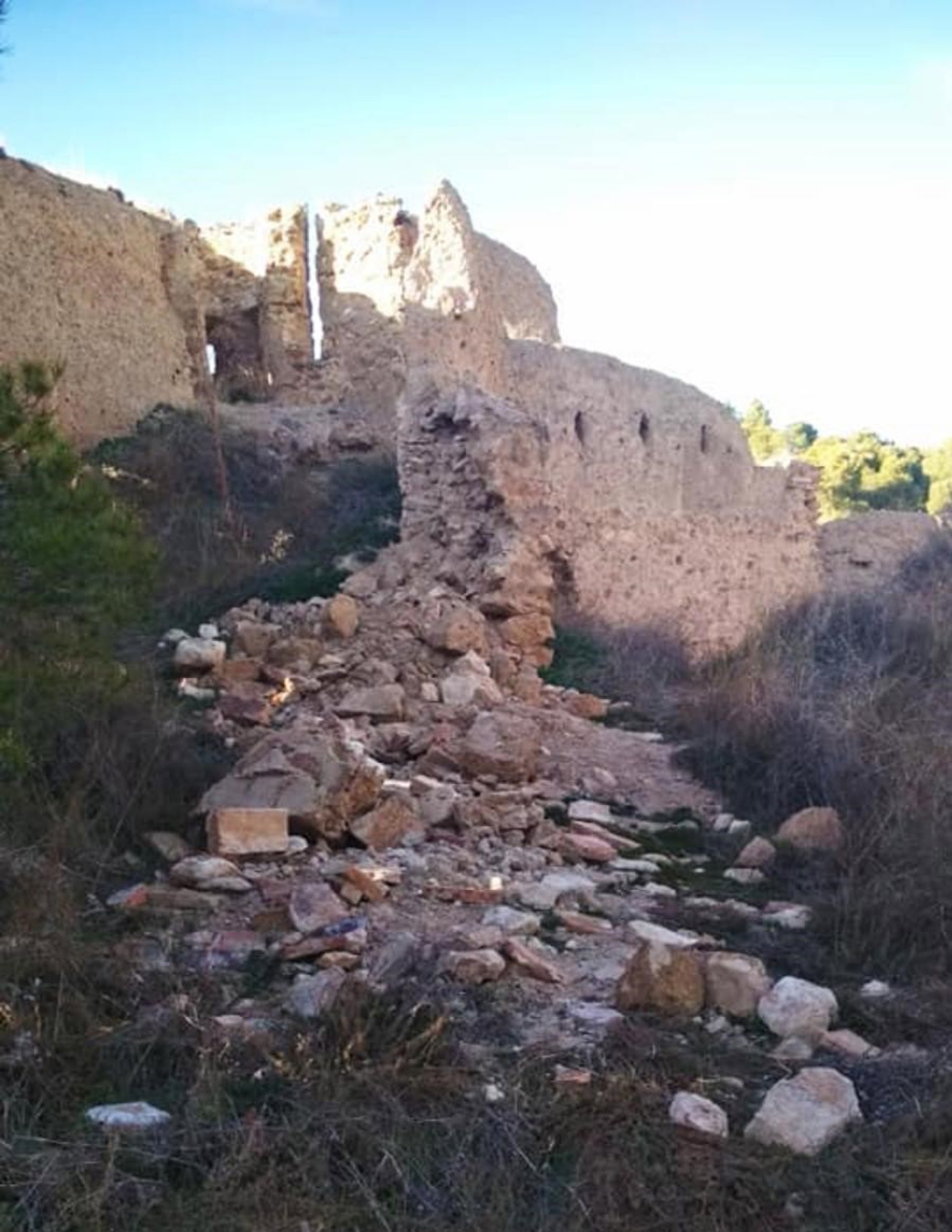 El tramo afectado se sitúa en una de las esquinas de una de las torres de la muralla. "Es una arquitectura en tierra tapial y está en malas condiciones, ya hemos advertido en varias ocasiones al Gobierno de Aragón y al Ministerio de Cultura, pero no nos dan ninguna solución", ha lamentado el alcalde.