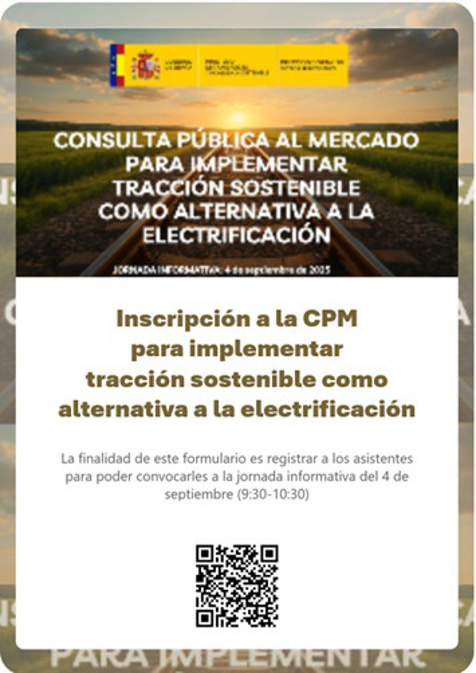 Su objetivo es recopilar información de los operadores económicos del sector ferroviario, garantizando al mismo tiempo la transparencia, la igualdad de trato y la no discriminación. La información y documentación en el marco de esta consulta, que permanecerá abierta para participación de los operadores hasta el 30 de septiembre, se encuentra disponible en la página web del Ministerio.