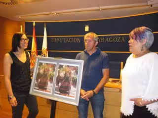 La diputada delegada de Cultura de la Diputación Provincial de Zaragoza (DPZ), Cristina Palacín, el alcalde de Trasmoz, Jesús Andía, y la organizadora de la feria, Lola Ruiz, han presentado este jueves el programa de actividades de esta cita con la brujería y la magia que ha sido declarada, además, Fiesta de Interés Turístico en Aragón.