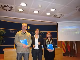 La diputada de Cultura de la Diputación Provincial de Zaragoza (DPZ), Cristina Palacín, la concejala de Cultura del Ayuntamiento ejeano, Juana Teresa Guilleme, y el director gerente de la sociedad municipal Sofejea, José Luis Jericó, han presentado en rueda de prensa la XLI edición del certamen, que se celebrará del 29 de abril al 1 de mayo y comenzará con un homenaje a Moisés Mena, director durante 20 años de la Coral Polifónica de Ejea, y que dará lectura al pregón, y con un concierto conmemorativo del 60 aniversario de esta formación.