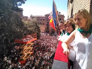 Posteriormente, han presenciado el disparo del cohete anunciador del comienzo de las fiestas de San Lorenzo que, este año, ha corrido a cargo de las policías locales Chus Gabarre y Rosa Cacho, integradas en el Equipo de Protección y Atención a la Familia.
