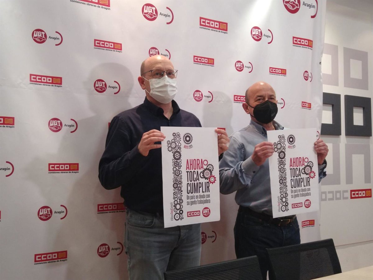 Los distintos actos que han organizado los sindicatos han sido presentados este martes, en una rueda de prensa, por los secretarios generales de UGT-Aragón, Daniel Alastuey, y CCOO-Aragón, Manuel Pina. El lema de este año será 'Ahora toca cumplir', en referencia a todas las negociaciones que los agentes sociales estaban desarrollando con el Ejecutivo central antes de la llegada de la pandemia.