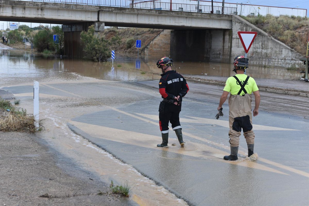La Unidad Militar de Emergencias (UME) continúa este sábado desplegada en varios municipios de la Ribera Alta del Ebro, en la provincia de Zaragoza, donde lleva a cabo operaciones de achique y bombeo de agua, despeje de viales y maniobras de contención ante las inundaciones provocadas por el episodio de lluvias intensas que están azotando el noreste de España.