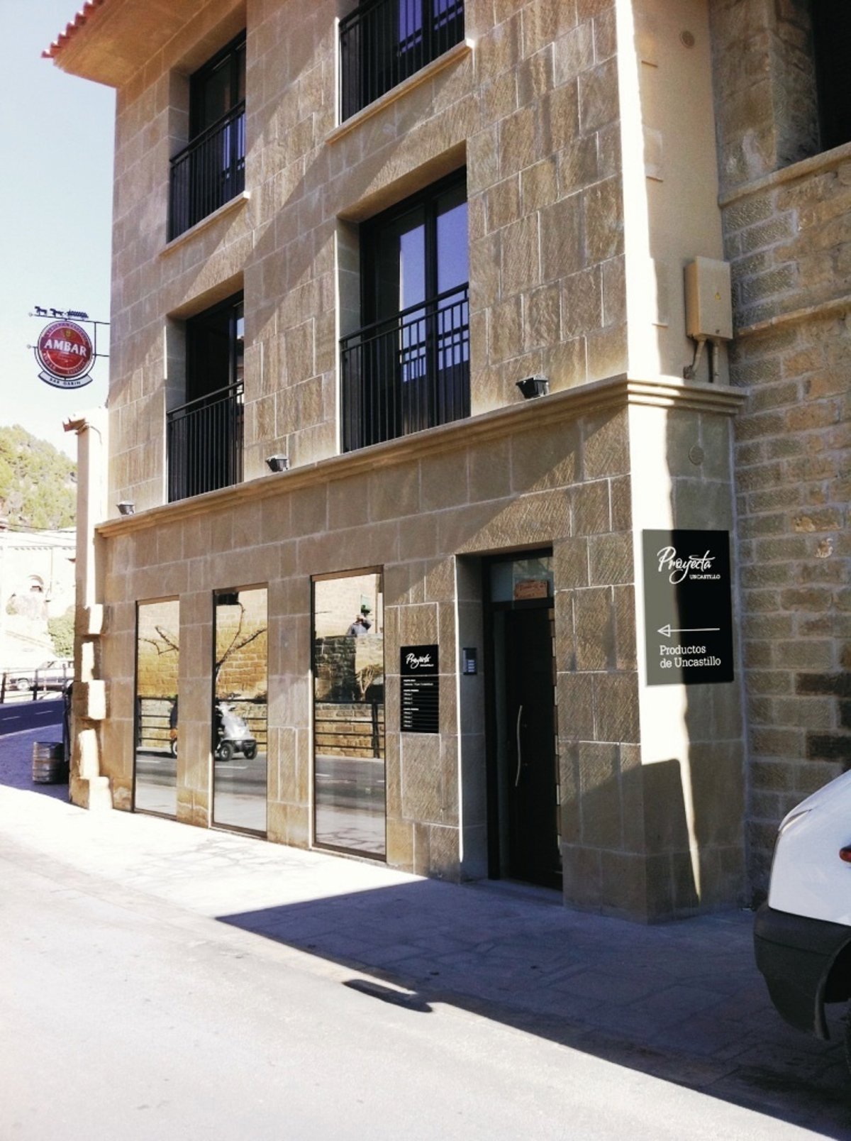 En la planta baja de este edificio se ha acondicionado una tienda para los Vinos Uncastellum, bodega de vinos ecológicos; en la primera, se ha contratado un local para la exposición y venta la empresa Olnasa, dedicada a la piedra natural y a la cantería, y también se instalará la empresa de construcción Trallero y Frago S.Cv.