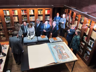 Han finalizado su visita en la antigua Sala de Lectura que, aprovechando la ocasión, se ha bautizado como Sala Jorge Coci, en honor del gran impresor del siglo XVI, afincado en Zaragoza, del que la Biblioteca conserva 40 obras de gran valor, algunas de ellas expuestas en la exposición que ahora alberga, titulada 'Imprenta: textos y géneros medievales'. El recorrido ha incluido también el Archivo Histórico, el fondo histórico, la sala de revistas y la zona de servicios centrales.