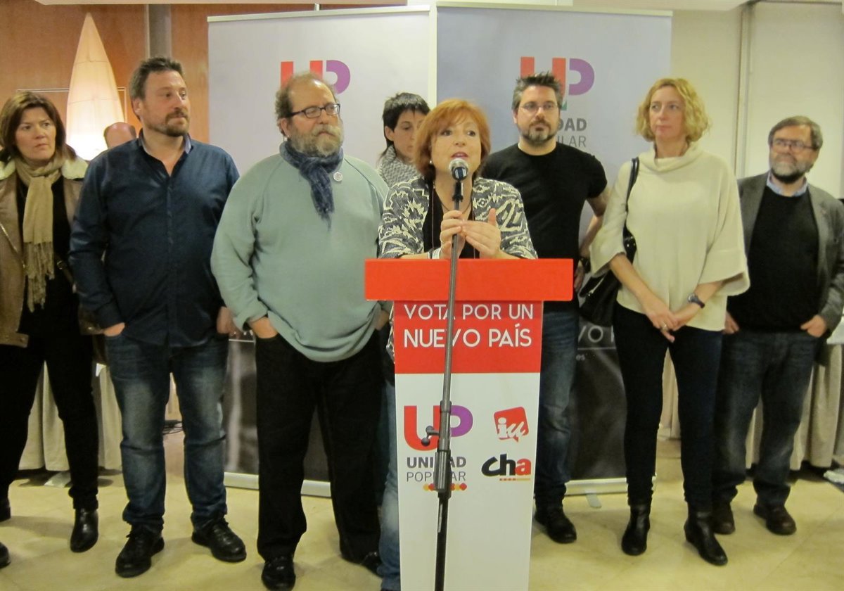 La cabeza de lista de Unidad Popular al Congreso por Zaragoza, Rosa Magallón, acompañada por el número dos, Chesús Yuste, ha expresado que la formación asume los "malos resultados" electorales, pero ha agregado que la candidatura de confluencia "no termina el 20 de diciembre".