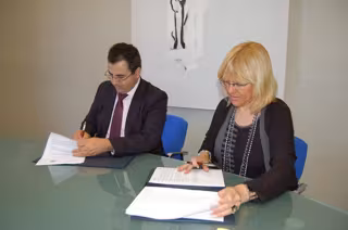La Universidad de Zaragoza (UZ) y la Universidad Andina 'Simón Bolívar' colaborarán en materia de enseñanza superior e investigación, gracias a un acuerdo que han suscrito la vicerrectora de Relaciones Institucionales y Comunicación de la UZ, Pilar Zaragoza, y el rector de la institución académica boliviana, Rafael Vergara.