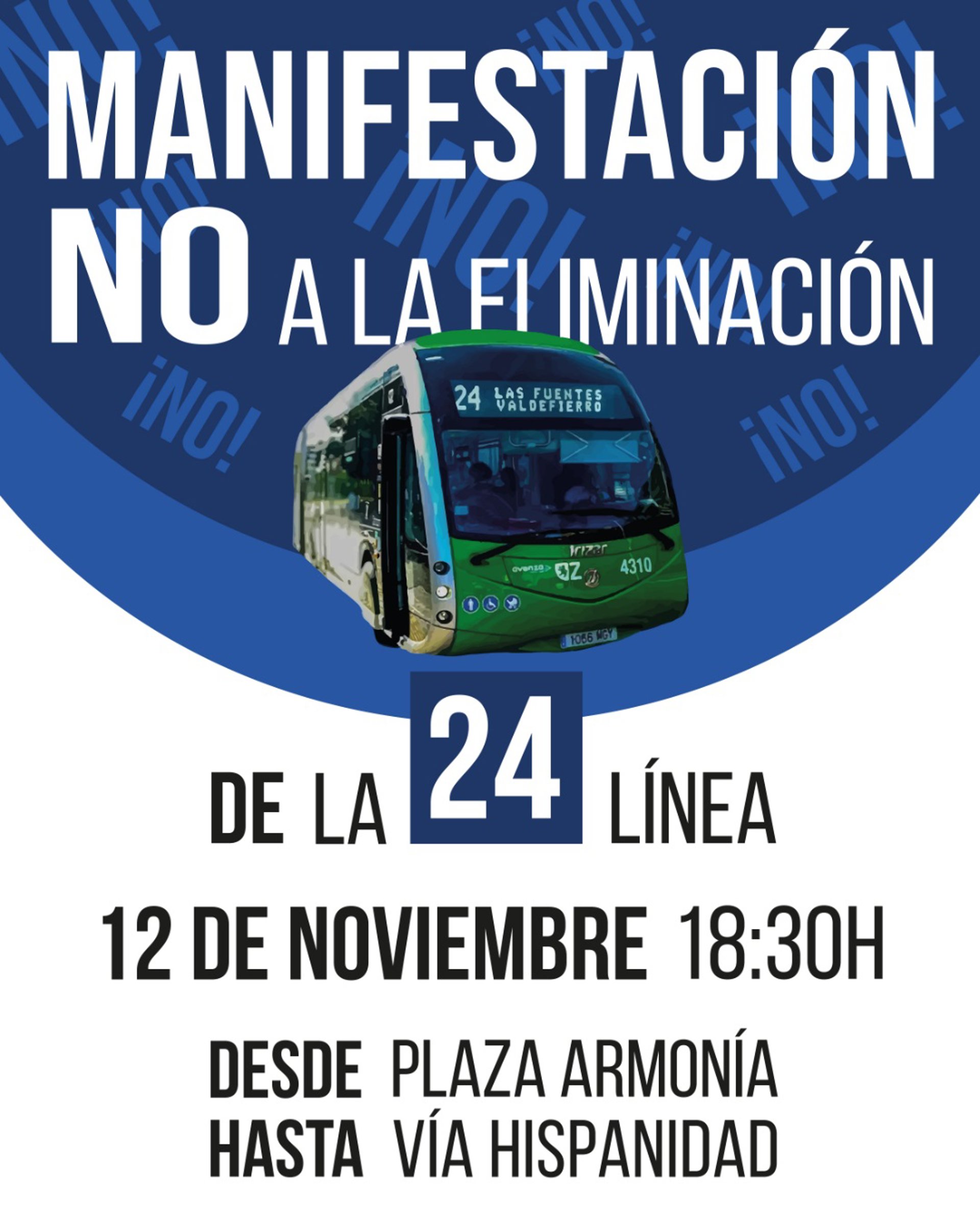 Las asociaciones vecinales y entidades ciudadanas del barrio de Valdefierro convocan una manifestación este martes 12 de noviembre para reclamar al Ayuntamiento que cese sus planes para suprimir la línea 24 de autobús urbano.