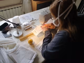 Una señora cosiendo mascarillas a máquina - AYUNTAMIENTO