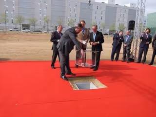 El barrio de Valdespartera de Zaragoza contará dentro de siete meses con el primer mercado de España que combinará mercado municipal y supermercado, un espacio del que este lunes se ha colocado la primera piedra para comenzar las obras, que han sido ya adjudicadas.