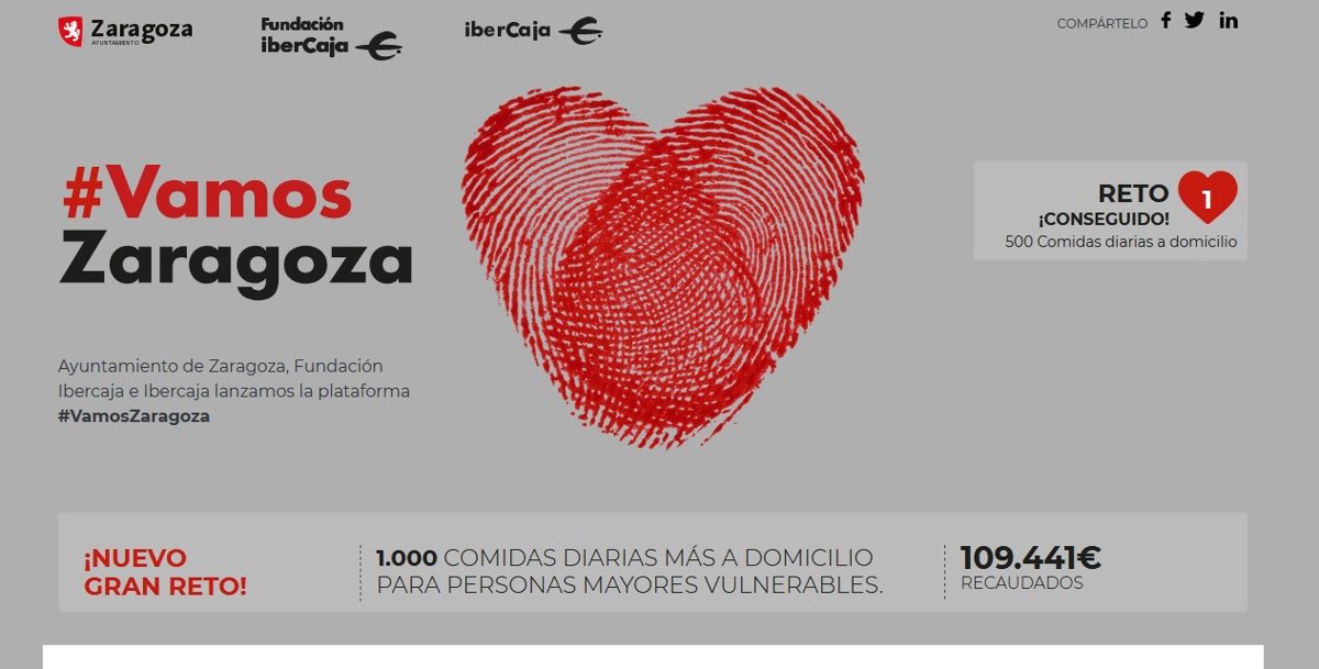 La plataforma "Vamos Zaragoza" --promovida por Ayuntamiento de Zaragoza, Fundación Ibercaja e Ibercaja Banco-- ha conseguido recaudar en los diez días transcurridos desde su puesta en marcha 408.000 euros. La respuesta solidaria de particulares y empresas zaragozanas ha permitido cubrir los tres primeros retos propuestos y ha lanzado un nuevo objetivo para ayudar a familias vulnerables.