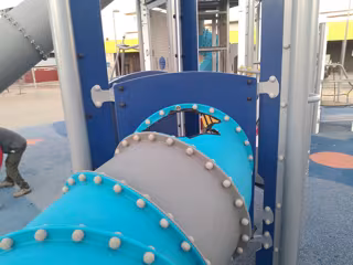 El recinto infantil ocupa una superficie aproximada de 300 metros cuadrados y cuenta con seis torres espaciales, siendo la más alta de ellas de siete metros, equipada con dos grandes toboganes curvados y varios túneles para trepar.
