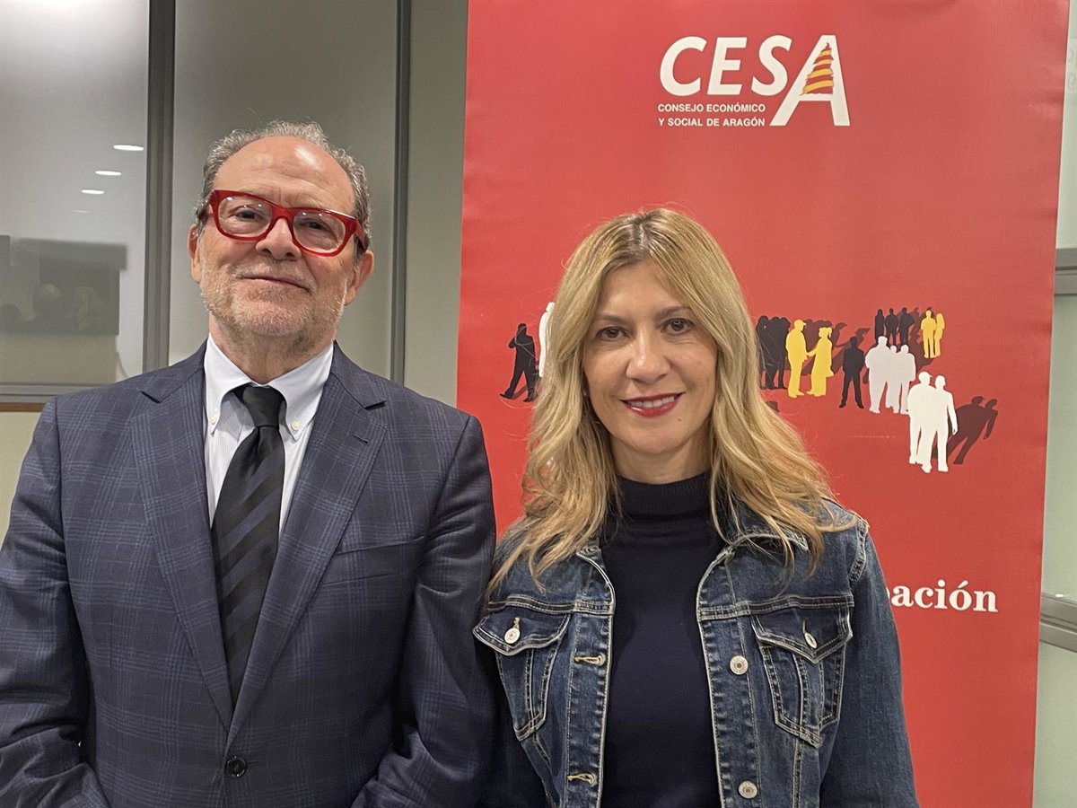 La vicepresidenta segunda del Gobierno de Aragón, Mar Vaquero, y el presidente del Consejo Económico y Social de Aragón (CESA), Juan García Blasco. - EUROPA PRESS.