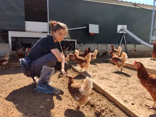Isabel Martín, del Grado de Veterinaria de la Universidad de Zaragoza, en la Granja San Miguel Campo de Daroca. - DIPUTACIÓN DE ZARAGOZA