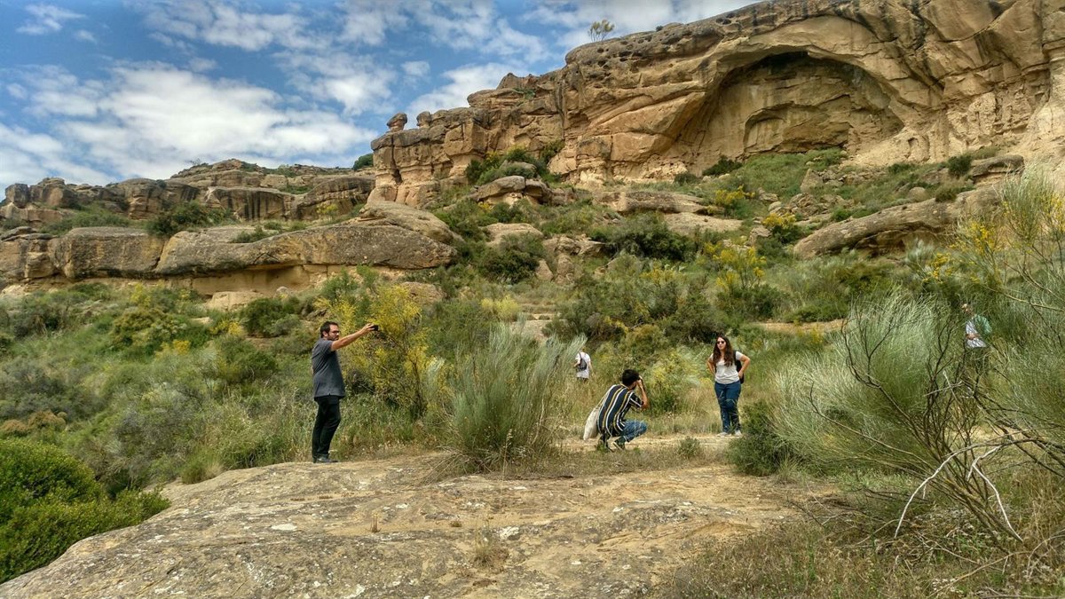 Tras descansar y tomar un picoteo en el bar La Vida es Bella de Sodeto, han visitado el paisaje de La Gabarda, con sus torrollones, características formaciones rocosas de arenisca modificadas al capricho de la erosión configurando un paisaje singular.