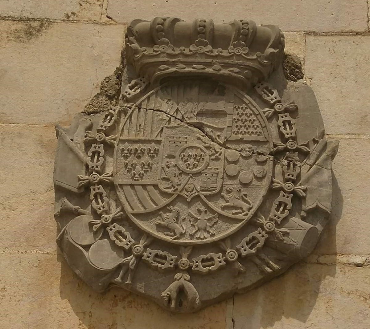 Escudo de Carlos IV que estaba en el Cuartel de Caballería, símbolo de los Sitios de Zaragoza, situado a la altura del portal 40 del paseo María Agustín de Zaragoza - VOLUNTARIOS DE ARAGÓN