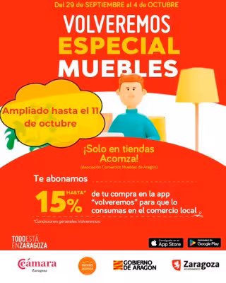 La campaña Volveremos Especial Muebles cuenta con la colaboración del Ayuntamiento de Zaragoza, la Cámara de Comercio de Zaragoza y el Gobierno de Aragón, en el marco del programa de apoyo al comercio de proximidad. Los consumidores pueden consultar los comercios participantes en la web oficial 'acomza.com/volveremos'.