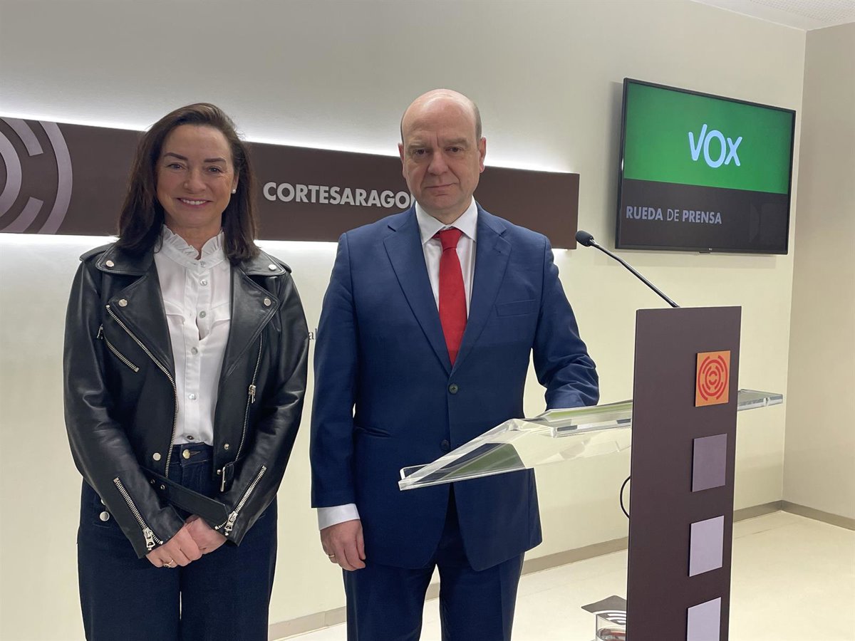 Los diputados de VOX en las Cortes de Aragón Santiago Morón, portavoz, y Carmen Rouco. - EUROPA PRESS.