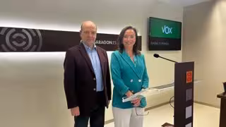 El portavoz de VOX en las Cortes de Aragón, Santiago Morón, y la diputada Carmen Rouco. - VOX.