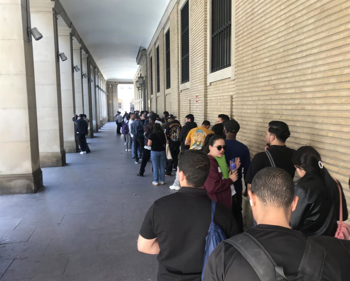 Fila de inmigrantes ante la Delegación del Gobierno en Aragón - EUROPA PRESS