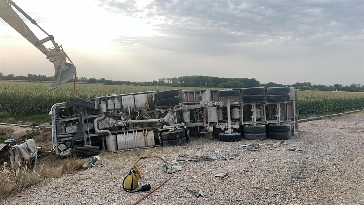 Una persona ha fallecido y otra ha resultado herida grave al volcar un camión en la carretera A-127 a la altura de Gallur este miércoles, siendo el primero el copiloto y el segundo el conductor, ha informado la Guardia Civil.