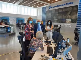 La delegada, acompañada por el subdelegado en Zaragoza, Fernando Beltrán, ha visitado esta semana el Centro de Gestión de Tráfico (CGT) Pirineos-Valle del Ebro que la DGT tiene en Zaragoza. Junto al jefe provincial de Tráfico, José Antonio Mérida, han recorrido las instalaciones: 400 metros cuadrados que alojan la sala de control más avanzada tecnológicamente de las que la Dirección General de Tráfico tiene en toda España.