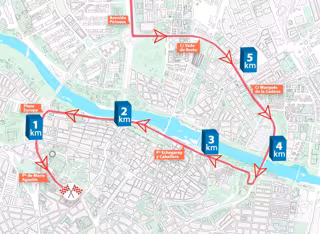 La carrera entrará en Zaragoza desde Villanueva de Gállego por la carretera de Huesca y continuará por Valle de Broto, Marqués de la Cadena, Puente de Las Fuentes, Paseo Echegaray y Caballero, Plaza de Europa y Paseo María Agustín.