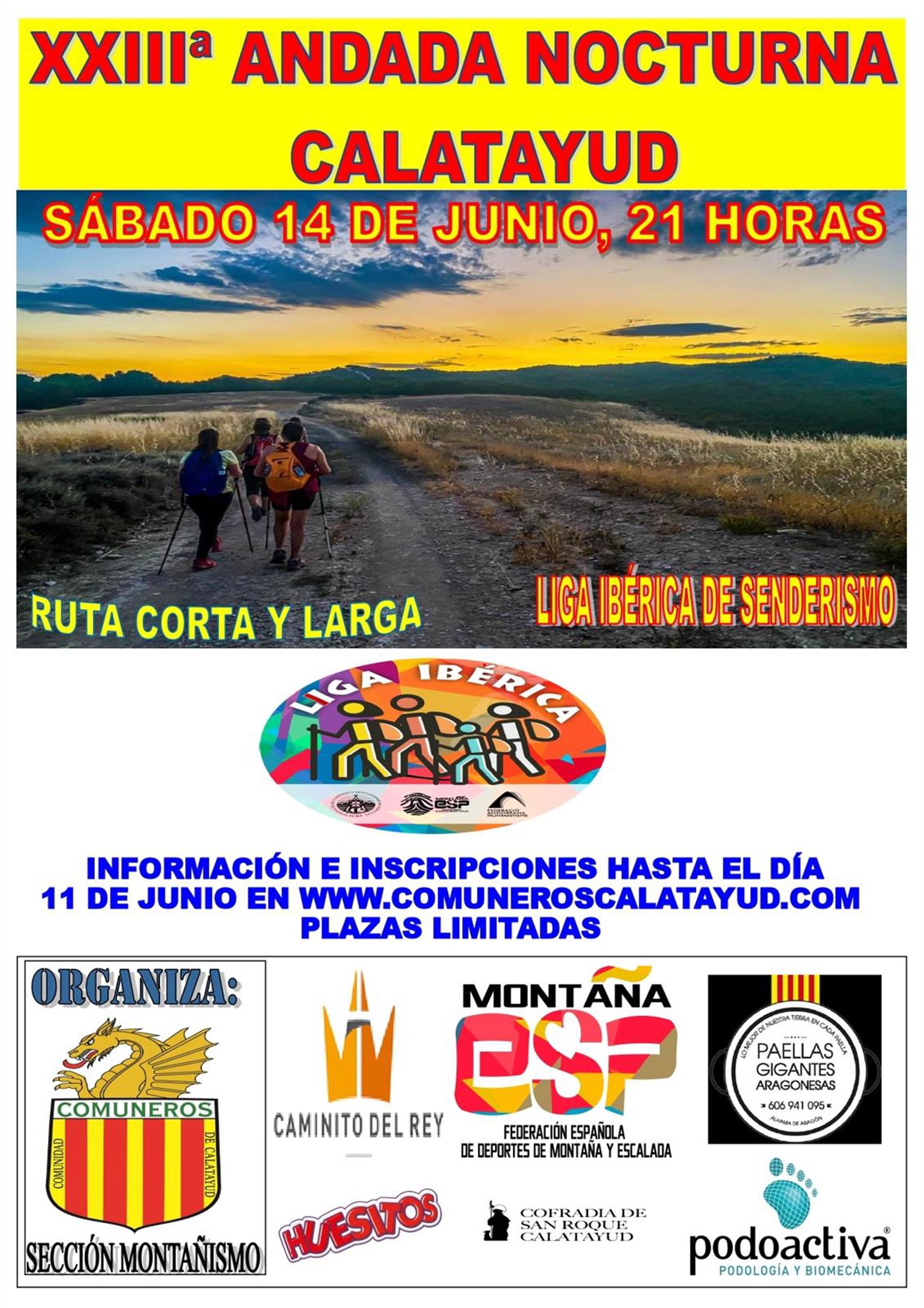 La sección de Montañismo de la Sociedad Cultural y Deportiva Comuneros de Calatayud (Zaragoza) ha decidido devolver a sus orígenes la XXIII edición de su famosa Andada Nocturna que se celebrará el próximo sábado 14 de junio con dos recorridos de 21 y 11 kilómetros que serán guiados por monitores de la organización.