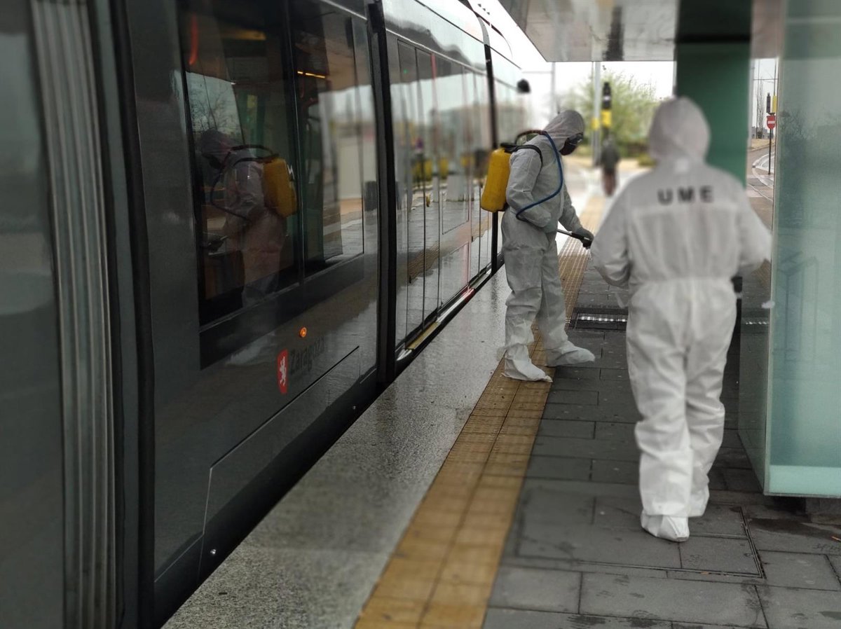 El descenso en el transporte publico de Zaragoza, tanto en el tranvía como en el autobús urbano, es del 90 por ciento desde el inicio del confinamiento por el decreto del estado de alarma.