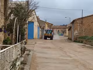 De este modo, la limpieza ha comenzado a las 9.00 horas y se ha centrado en desinfectar las calles de esta localidad zaragozana. Se ha pedido a los vecinos que mantengan las ventanas cerradas, las persianas bajadas y que retiren los vehículos de las vías para no obstaculizar el paso de la maquinaria y llegar a todos los rincones.