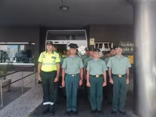 De esta forma, los efectivos antiincendios se han concentrado en las puertas de los cuatro parques de Bomberos de la ciudad, mientras que los guardias civiles lo han hecho en el acuartelamiento 'El Carmen', donde la bandera ondeará a media asta durante tres días por el luto oficial decretado.