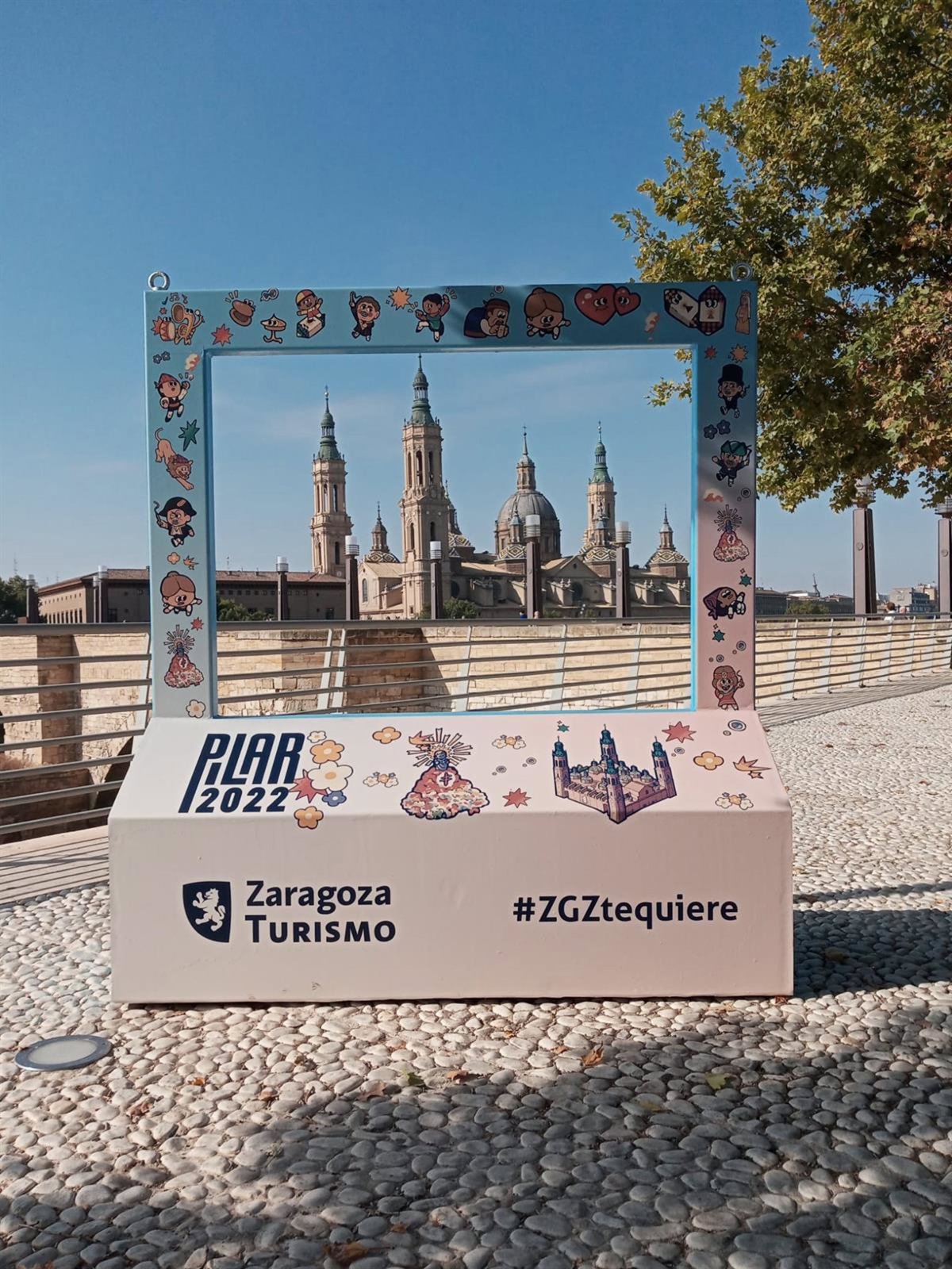 Zaragoza Turismo ha instalado un photocall en el balcón de San Lázaro, en la margen izquierda, para retratar una de las imágenes más icónicas de la ciudad. Estará en esta ubicación durante todas las Fiestas del Pilar hasta el 16 de octubre.