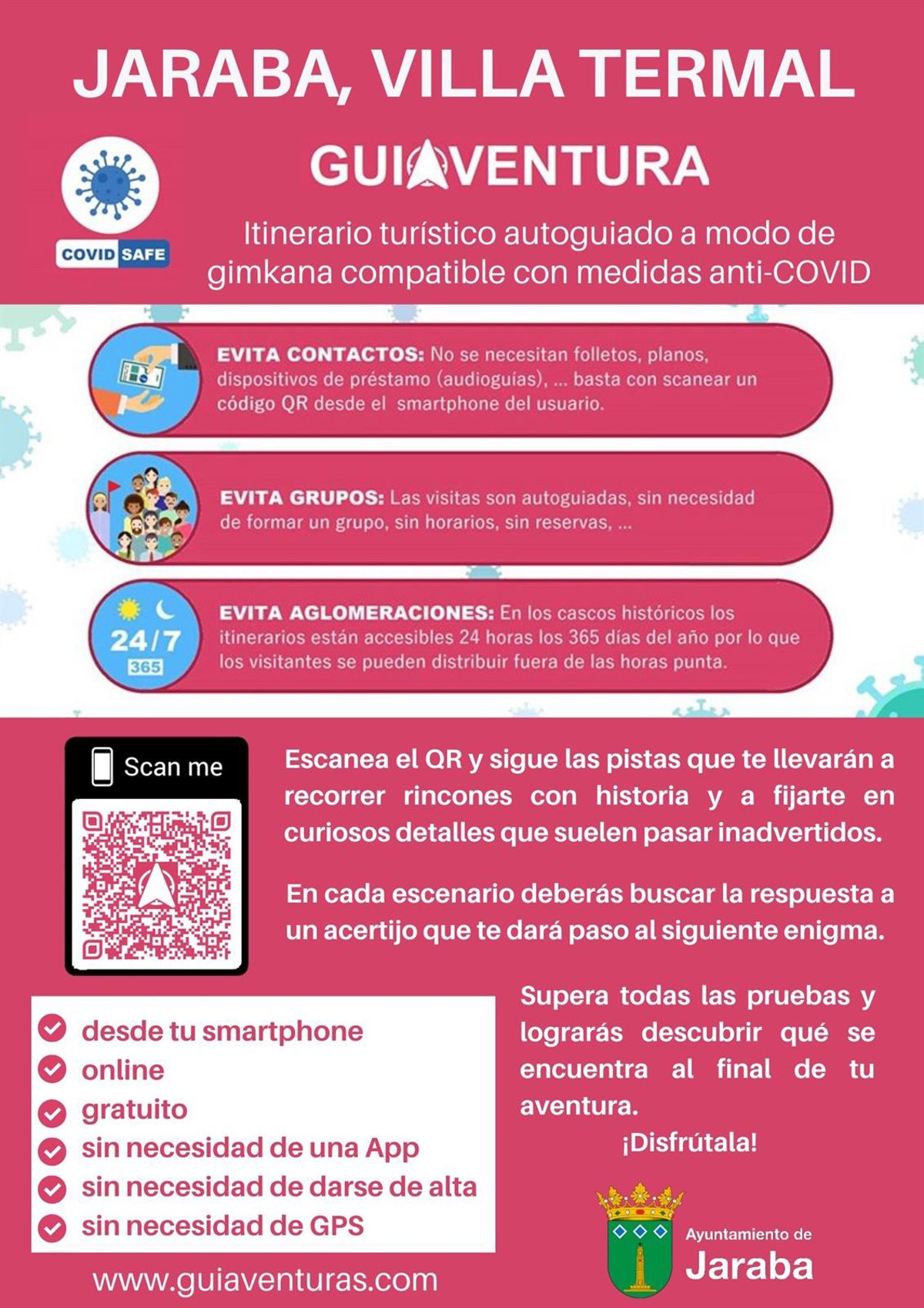 El Ayuntamiento de Jaraba ofrece una innovadora experiencia turística compatible con las medidas de seguridad para evitar la propagación del coronavirus, una 'guíaventura' que permite conocer la localidad de una forma diferente.