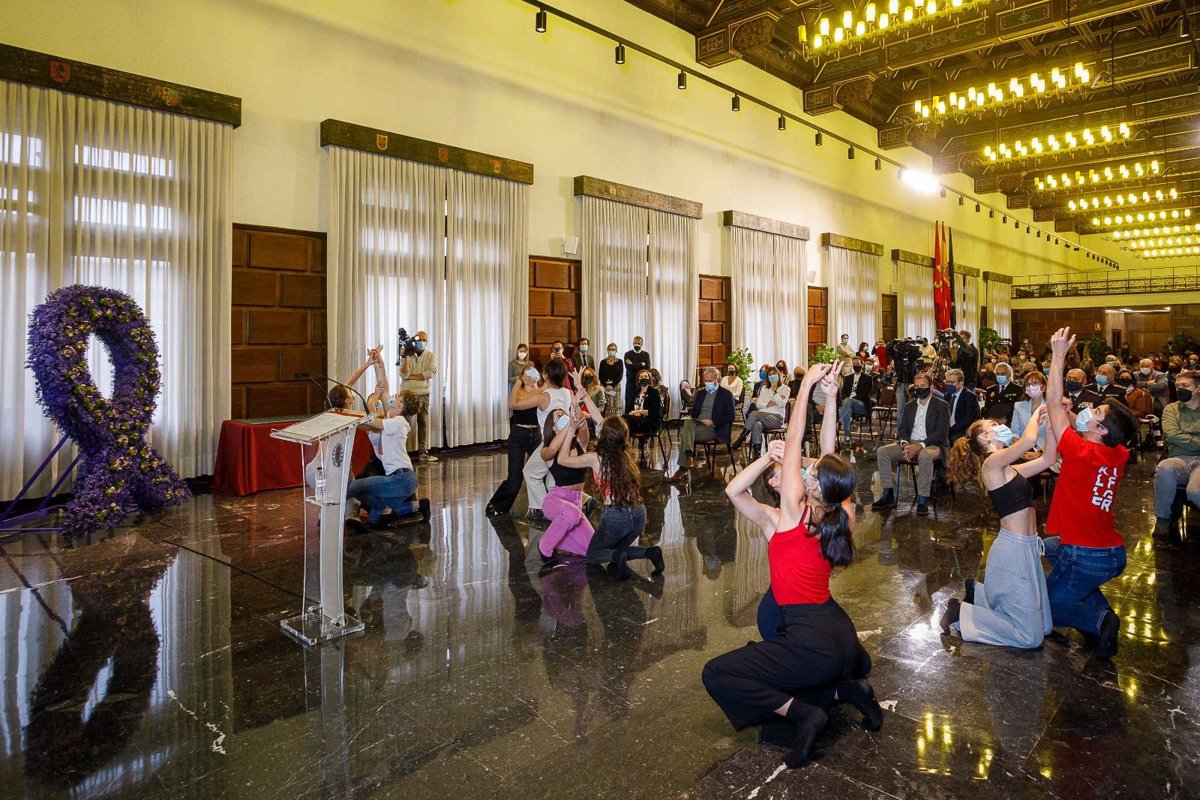 El Conservatorio Municipal Profesional de Danza ha completado este emotivo homenaje con un espectáculo en el mismo salón de recepciones. Los alumnos se han levantado entre el público y han bailado sobre las sillas y el suelo mientras sonaba una versión interpretada por María Calas de la pieza 'El amor es un pájaro rebelde' de la Ópera Carmen de Bizet.