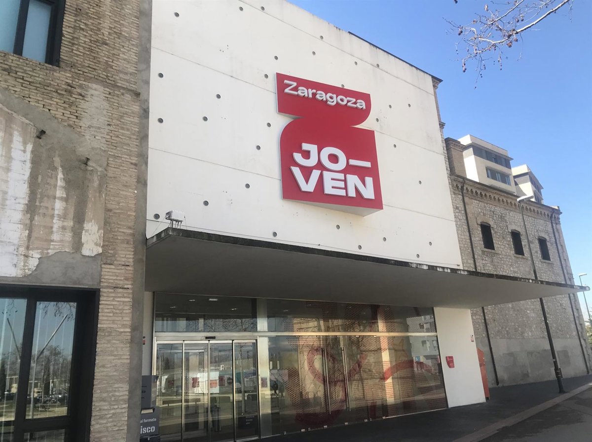 Archivo - Fachada de La Azucarera con el cartel de Zaragoza Joven - EUROPA PRESS - Archivo